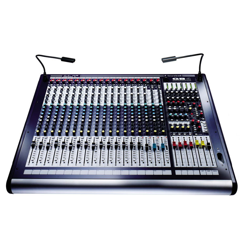 声艺Soundcraft 四编组现场演出调音台 SOUNDCRAFT GB4; 提供七组主输出,八组辅助输出,7x4 矩阵输出,每通道的直接输出,四组哑音编组??优良的功能,再加上优异的电器性能,能够满足非常复杂的工作需求。16、24、32 和 40 个通道的 5 种结构尺寸