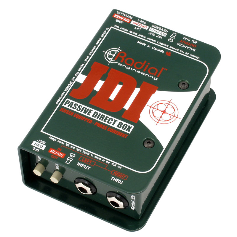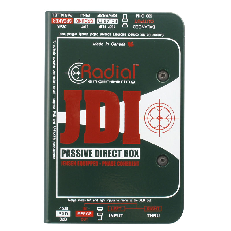 Radial JDI 是一种相位相干、无源直接盒,采用镍层压 Jensen? 音频变压器,具有几乎为零的相位失真、巨大的动态处理和从 10Hz 到 40kHz 的直尺平坦响应。Radial JDI 是世界上好的无源直接盒。凭借其重型钢壳和内部工字梁结构,JDI 旨在即使在最恶劣的旅游环境中也能优良地工作长时间。JDI Duplex 和 JD6 是各种键盘、贝司和原声乐器的理想选择,也可用于立体声和多声道应用。