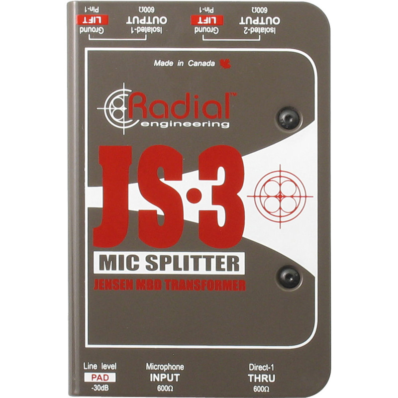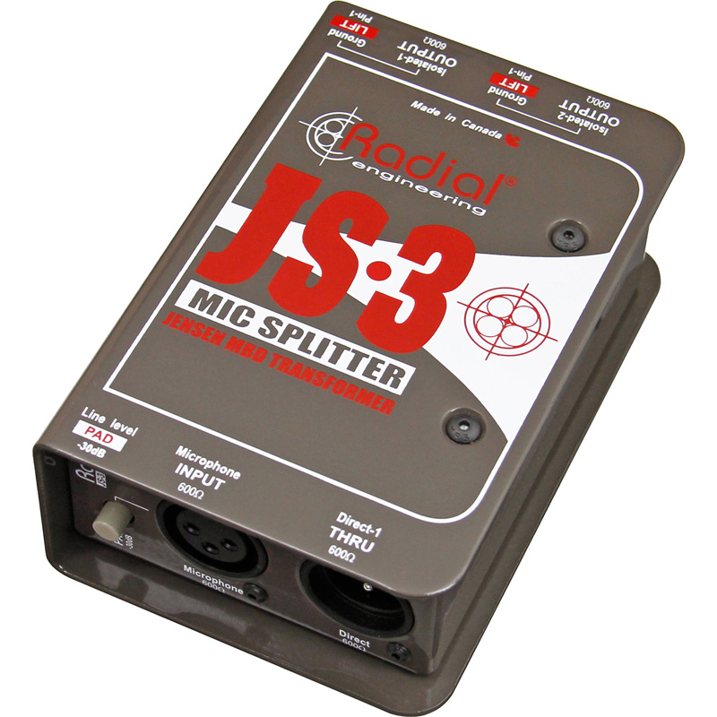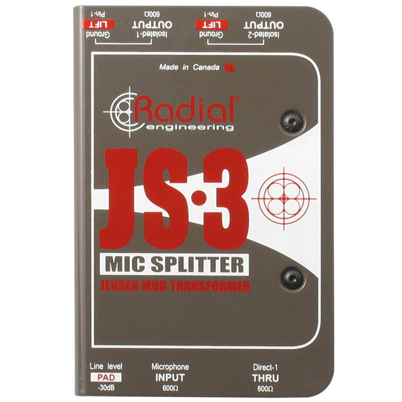 Radial JS3 麦克风分配器是一种无源设备,它采用 Jensen 变压器来执行麦克风桥接,因此,所有技术规格均显示隔离输出。需要注意的是,JS3 已经针对麦克风级别的使用进行了优化,并且每个设备都配备了 MuMETAL? 屏蔽和实心钢外壳,以确认将外部磁干扰造成的污染降到低价。