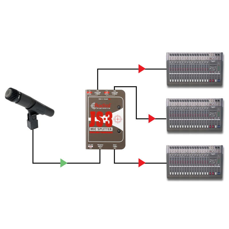 Radial Engineering JS3 一进三出无源麦克风分配器 单通道一进三出无源话筒分配器 麦克风分配器