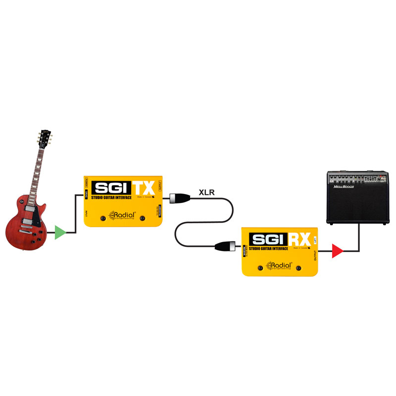 SGI 可远距离发送吉他信号而不会丢失信号或噪音,同时保留乐器的原始音调。在录音室中,它允许吉他手坐在控制室并连接到远处的吉他放大器。在舞台上,SGI 可用于使用台外隔离柜演奏吉他放大器,也可用于管理进出无线系统、踏板和放大器的吉他信号。SGI 由两个盒子组成:SGI-TX 发送器和 SGI-RX 接收器。TX 和 RX 之间的连接使用标准平衡 XLR 麦克风电缆进行。使用时,您只需将吉他插入 SGI-TX 输入并从 SGI-RX 输出连接您的放大器,您就可以开始使用了。SGI 为您完成所有的平衡、缓冲和阻抗匹配。