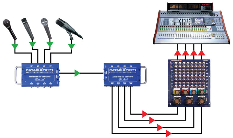 Radial,TX4M-RX4M,4通道音频网络传输器,远距离信号传输器,音频信号网络传输器,远距离音频信号系统,