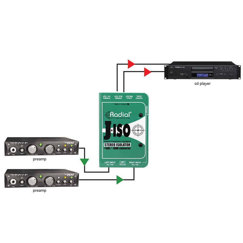 电脑在好的时候很吵!Radial J-Iso 的优良 Jensen 变压器有助于取消嗡嗡声和嗡嗡声,同时提供优良的音频。调整 J-Iso 上的设置和忘记电平控制以设置信号电平。