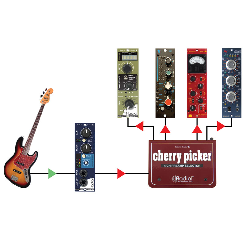 Radial Cherry Picker 4-Channel Preamp Selector 一进四出话筒前置放大器DI直插盒 切换器