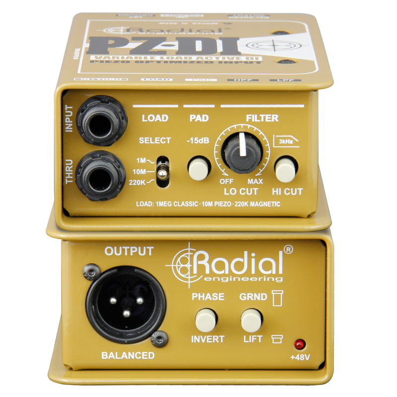 PZ-DI 是一款性能稳定一对一有源直接箱,设计用于容纳原声和管弦乐器,具有可选的输入阻抗,可容纳磁性拾音器或压电换能器,以及可变低切滤波器。