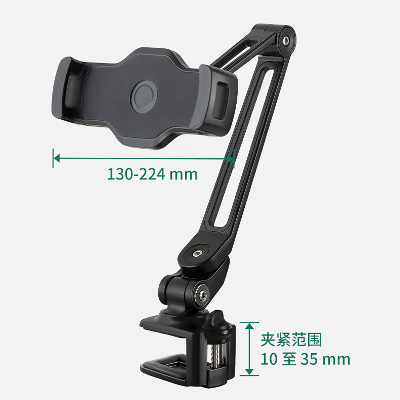 持有人可容纳设备从10.2至13”的大小,相应的夹紧范围从130至224毫米。