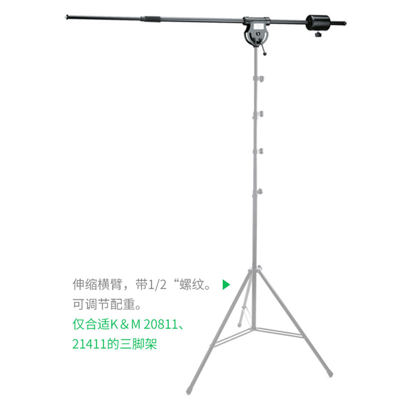 K&M 21231-400-55 伸缩杆 专注服务麦克风话筒支架横臂 悬臂话筒支架20811-409-55 4.4米高麦克风支架 高麦克风话筒支架 录音棚加重加大加高麦克风支架话筒架 重型落地话筒支架