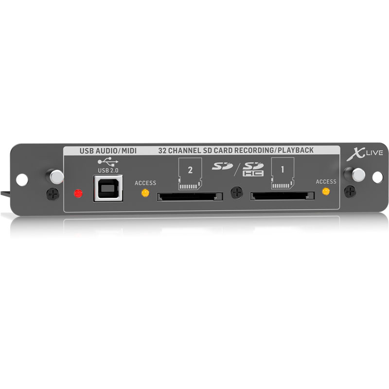 X-livethe x-live 接口卡扩展了 x32控制台长时间来标准的 x-usb 接口卡的效果性能。同样的32通道双向音频 i/o 通过 usb 2.0可用,提供32通道的录音和回放,加上通过 hui/mackie 控制模拟远程操作你的 daw。增加了双 sd/sdhc 插槽,提供了全部独立的录音和回放多达32个未压缩的 wav 文件在一致的会话-大的的 sd 卡的容量。无需笔记本电脑的多通道录音,以及虚拟音效检查、实时回放跟踪支持、准确的标记处理和操作,以及来自 pc、 android * 或 ipad * 应用程序和 x-touch 控制面的全部远程操作。所有这些仅仅是 x-live 能给你的 x32带来的表面。