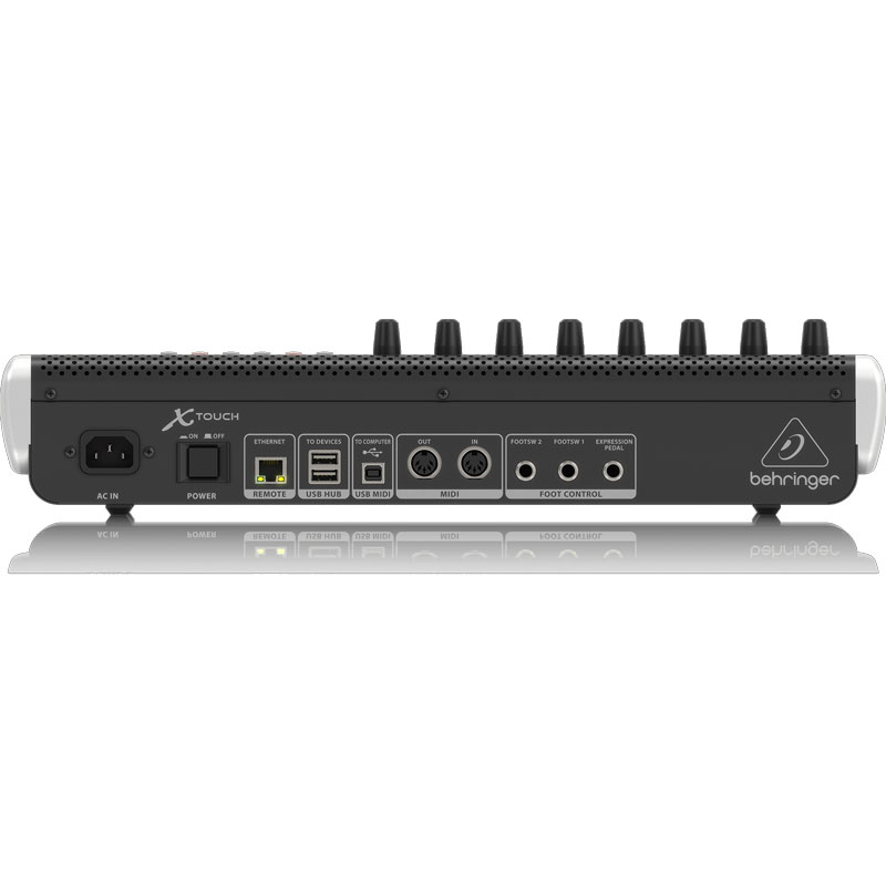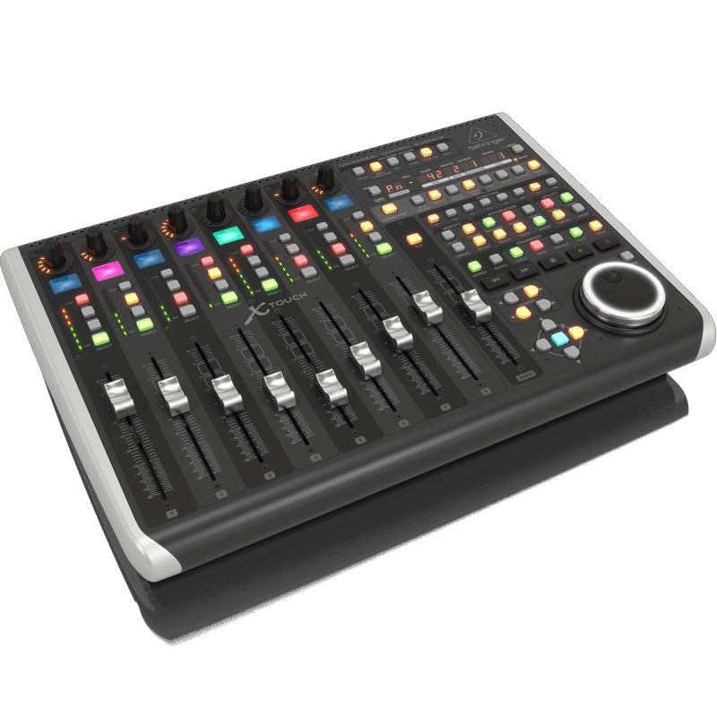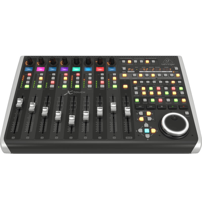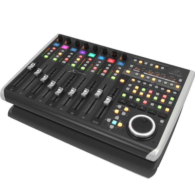 Behringer X-Touch,有 9 个触感电动推子, 8 个用于轨道名称和参数即时概览的 LCD Scribble Strips(LCD 标签条),再加上 8 个带有 LED 圈的旋转控制。含有 Dual-Layer(双层)模式和 U等/MIDI 连接,X-Touch 还有一个 Ethernet(以太网)端口。