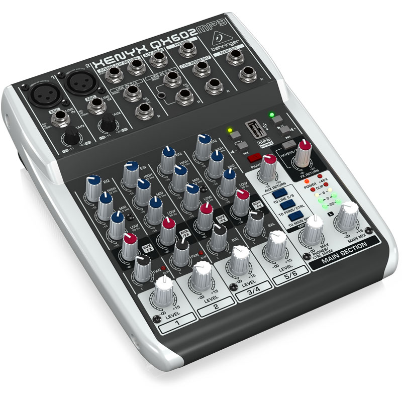好的质量6输入2总线混音器,配有氙气麦克风前置放大器,英国 eq,mp3播放器和多重外汇