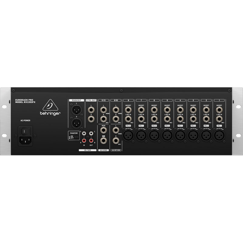 具有XENYX麦克风前置放大器,英国EQ和Multi-FX处理器的好的质量12输入2总线机架模拟调音台:Behringer RX1202FX