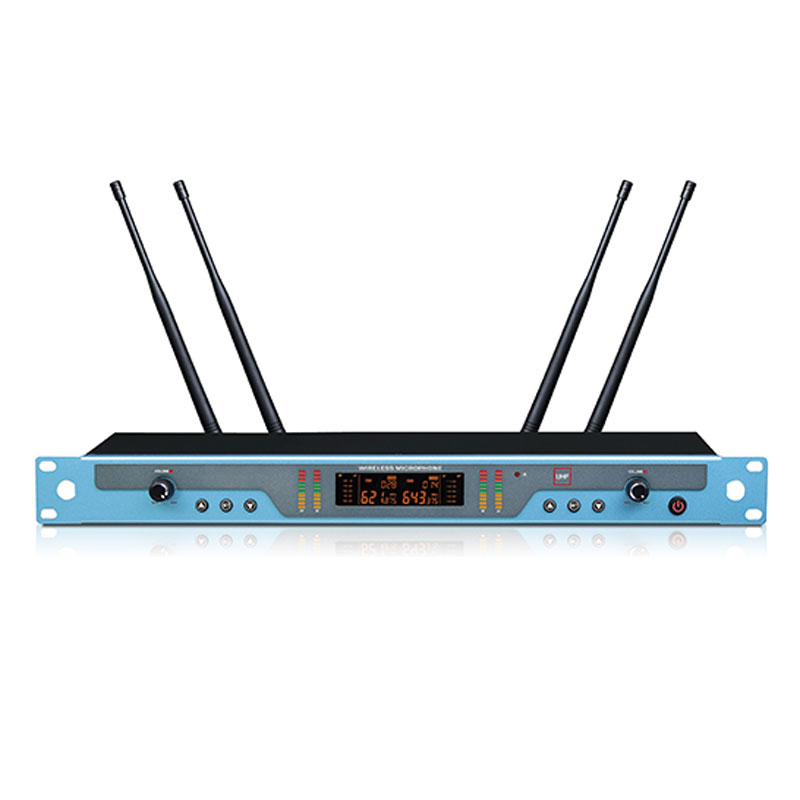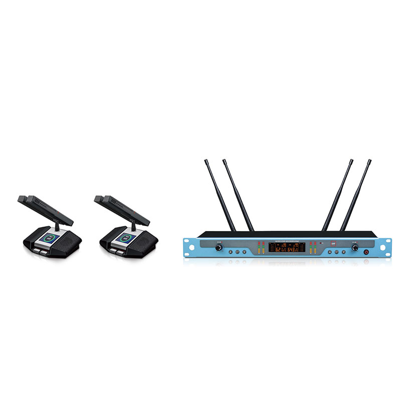 (1) 采用PLL数字锁相环多通道频率合成技术,标准IEEE Drat2.0 802.11n无线指标,确保传输的保密性和速度,严格的数字化保护,确保会议的私密性,避免和恶意干扰;采用高性能音频处理芯片,超高频动态压缩分流技术,将高低频自动分流加载,展现更好的动态性能;在50MHZ 频率带宽以250KHz间隔,提供多达200个信道选择,可锁定控制功能选择,可调整无线增益连接功能;频率稳定度:士0.005%以内,动态范围: 100dB,频偏: ±45KHz,音频响应: 80Hz-18KHz,综合信躁比: >105dB,综合失真:≤0.5%,无线接口: BNe/50欧,灵敏度:12DB Bμ (80dBS/N),灵敏度调节范围:12-32DB,杂散抑制:≥75dB,输出电平:±10DB V,方便多套机器同时使用,轻松避开各类干扰;超远距离≥100米稳定讯号,采用一键自动雷达搜索频率自动对频,彻底简化复杂的工程安装,全新概念的数字导频技术,彻底解决KTV包房相互串频现象,串频;四个显示屏独立显示单路的信息,宽大清晰的高清2英尺液晶显示屏可查看无线单元的电池电量、频率信号、信号强弱、音频电平等信息状态;全硅胶导光按键,显示简结工整;声音曲线经过精心调教,声音温暖通透,配置有啸叫抑制功能电路,全新的音频电路构架,音频信号处理采用国际高性能音频处理芯片,失真声音处理电路设计,在声音的细节上具有优秀的表现力,强劲的动态跟踪能力使得远和近距离拾音收放自如;调试更简单,支持无线全数字通讯会议。