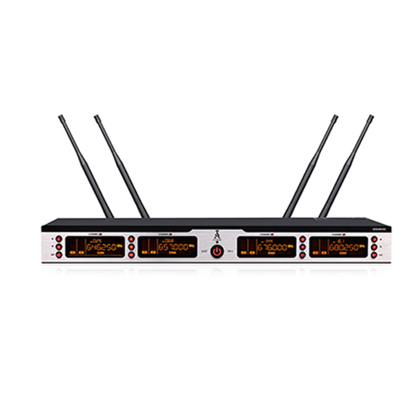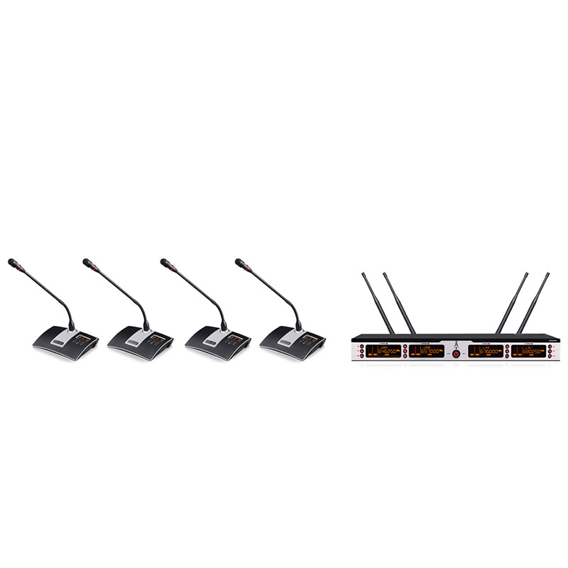 (1) 采用PLL数字锁相环多通道频率合成技术,标准IEEE Drat2.0 802.11n无线指标,确认传输的保密性和速度,严格的数字化保护,确认会议的私密性,避免恶意干扰;采用性能稳定音频处理芯片,高频动态压缩分流技术,将高低频自动分流加载,展现优良的动态性能;在50MHZ 频率带宽以250KHz间隔,提供多达200个信道选择,可锁定控制功能选择,可调整无线增益连接功能;频率稳定度:士0.005%以内,动态范围: 100dB,大的频偏: ±45KHz,音频响应: 80Hz-18KHz,综合信躁比: >105dB,综合失真:≤0.5%,无线接口: BNe/50欧,灵敏度:12DB Bμ (80dBS/N),灵敏度调节范围:12-32DB,杂散阻止:≥75dB,大的输出电平:±10DB V,方便多套机器同时使用,轻松避开各类干扰;超远距离≥100米稳定讯号,采用一键自动雷达搜索佳频率自动对频,透彻简化复杂的工程安装,全新概念的数字导频技术,透彻解决KTV包房相互串频现象,进一步了解串频;四个显示屏独立显示单路的信息,宽大清晰的高清2英尺液晶显示屏可查看无线单元的电池电量、频率信号、信号强弱、音频电平等信息状态;全硅胶导光按键,显示简结工整;声音曲线经过细致调教,声音温暖通透,配置有啸叫阻止功能电路,全新的音频电路构架,音频信号处理采用口碑优良性能稳定音频处理芯片,低失真声音处理电路设计,在声音的细节上具有优良的表现力,有力的动态跟踪能力使得远和近距离拾音收放自如;调试简单,支持无线全数字通讯会议。