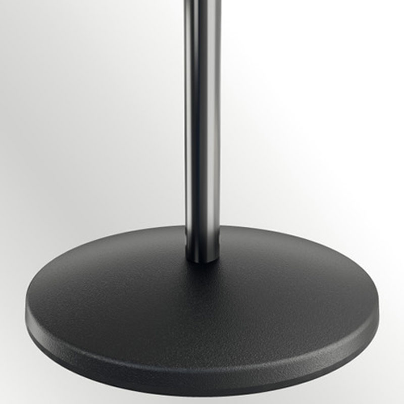 三角形杆;滚花螺钉不可能丢失;可以无声、简单、轻松地进行调节;重量轻,但由于巧妙的圆形底座带有集成钢板和美观的塑料盖,因此仍然很稳定;环形橡胶轮廓减少了不需要的振动和脚步噪音