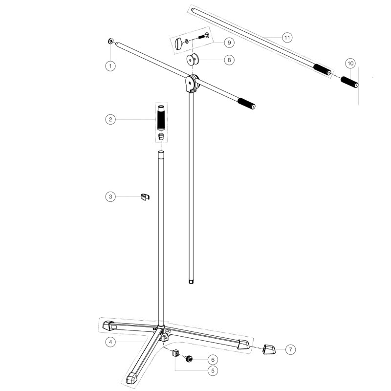 入门级价格适宜麦克风支架。实用的旋转接头可同时调整一体式悬臂的倾斜度和长度。由于重量仅为 1.84 千克,因此特别适合移动音乐家。支架占用空间小,因为其底座直径仅为 660 毫米。大脚端盖有助于使支架稳定并减少令人不快的传输噪音。