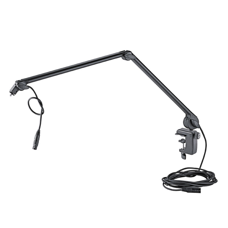 夹紧范围: 10 至 51mm 毫米 / ? 15 至 ? 51 mm毫米,这款值得信赖的麦克风臂采用现代设计,带有 3/8" 或 5/8" 螺纹连接器,长度: 从 460 到 960 mm毫米,大限度。承载量: 1.5kg公斤,带有全新的创新桌面夹,螺纹接头: 3/8" 和 5/8",重量: 1.232 公斤。可在工作室或多媒体工作站速度适宜轻松地定位麦克风。6m 长的内部导向麦克风电缆具有一个 3 针 XLR插头连接器。麦克风大的。1.5kg 公斤可轻松放在任何位置。10 至 51 mm / ?15 至 ? 51 mm 的夹持宽度允许夹具连接到各种表面。稳定的金属结构和品质优良塑料嵌件确认牢固牢固的固定。形状巧妙的夹紧部件使夹具可用于光滑表面和圆形管子。麦克风臂也可以通过可选配的桌面法兰 23855 固定。