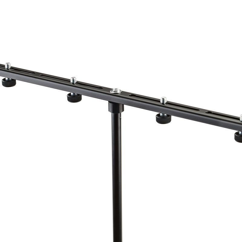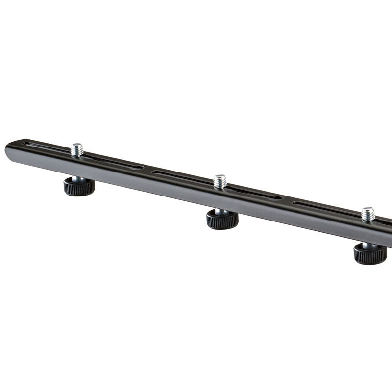 长的麦克风条(850mm毫米),适用于不同的录制技术。稳定,无振动设计。6个细长的安装槽,包括用于连续调整的节螺丝。
