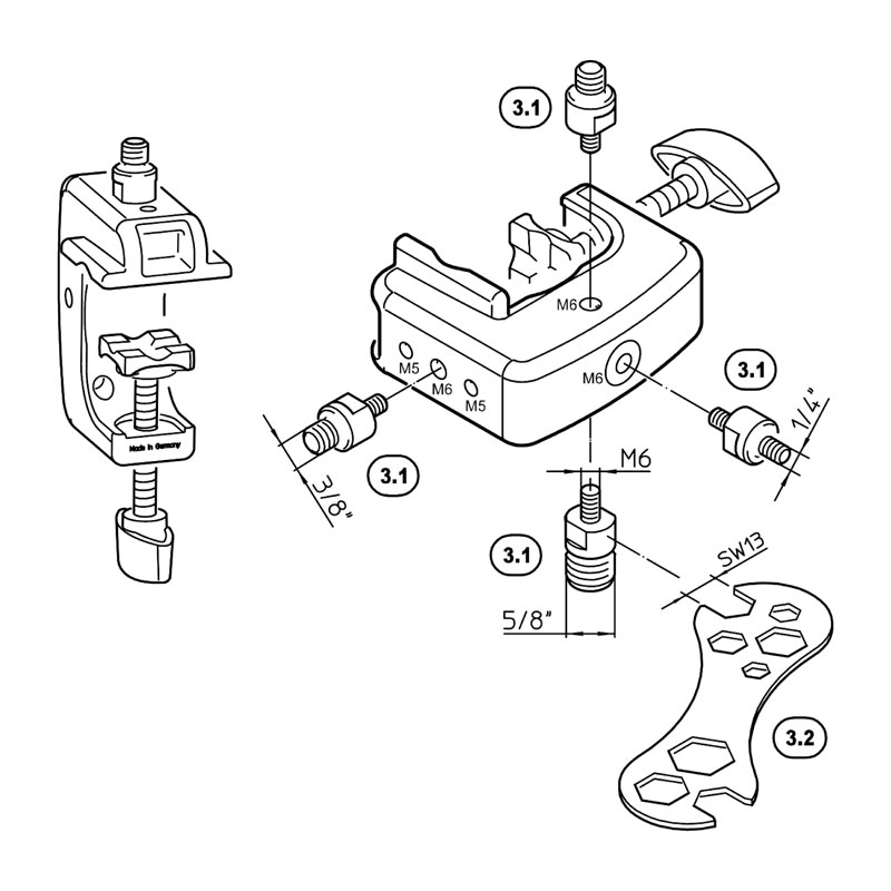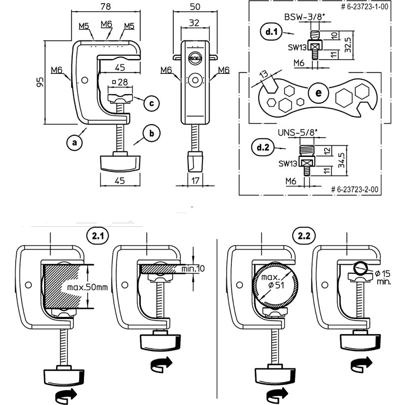 带有 3/8 英寸螺纹连接器的新型台式夹具是一款优良的能力好型产品。使用随附的效果好扳手,可以从四个不同的方向固定螺栓。还可以使用附加或其他螺栓(1/4 英寸、3/8 英寸、5/8 英寸)来延长夹具。夹具的夹紧范围为 10 至 51mm 毫米,适用于各种安装。稳定的金属结构搭配品质优良塑料嵌件,确认牢固固定。巧妙造型的夹紧部件使夹具可用于光滑表面和圆形管。