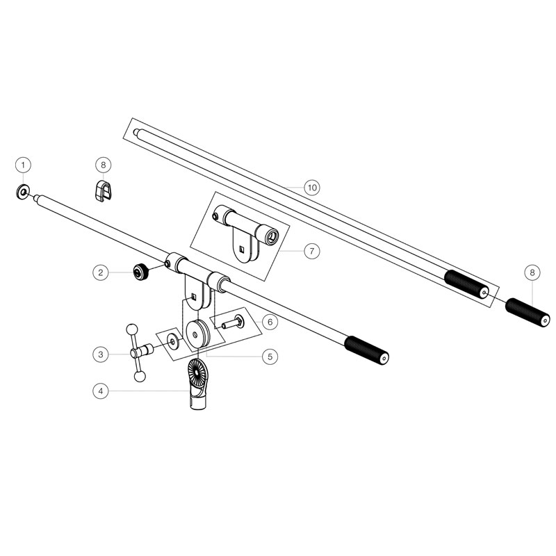 经典的单件吊臂与3/8"螺纹,滑动调整通过非抓挠旋转关节。T形杆锁定螺丝容易收紧。配有锁定垫圈和塑料手把。