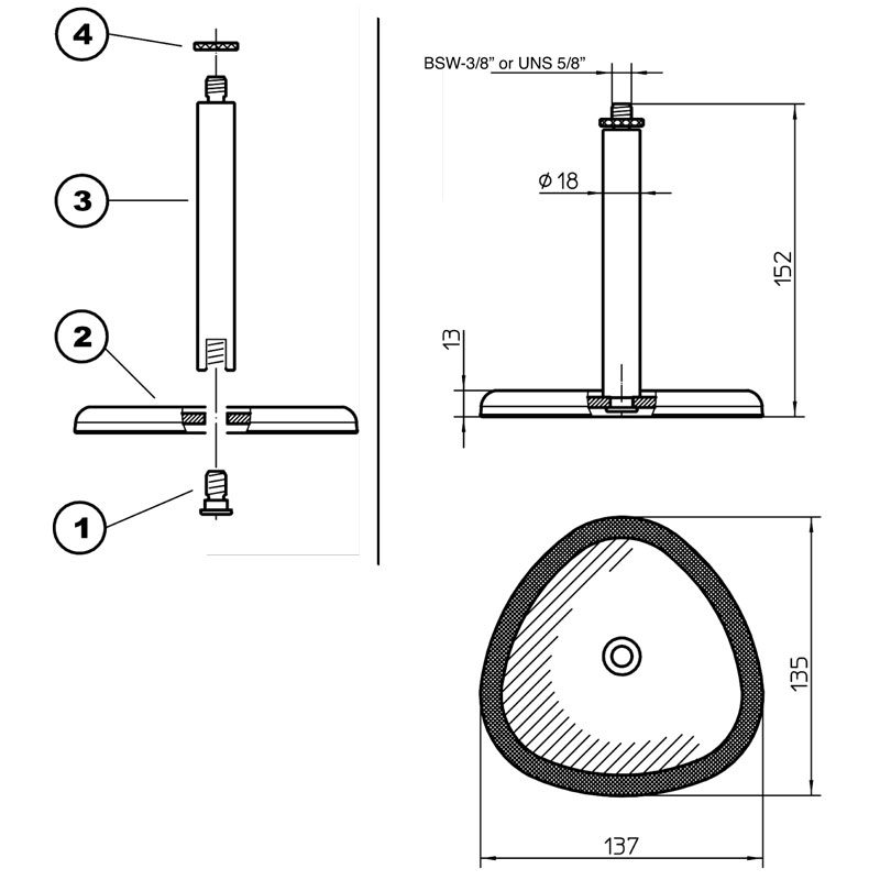 底座直径: 137mm 毫米,底座直径: 137mm 毫米,螺纹接头: 3/8",重量:0.75kg公斤。有趣的视角!经济实惠的桌面话筒支架,外形新颖,小巧实用。低支架及其值得信赖的三叶形底座(三角形)可将话筒优良稳固地固定到位。圆形橡胶插入环过滤脚步声,减少不需要的声音的传输,并提供滑无振动支架。