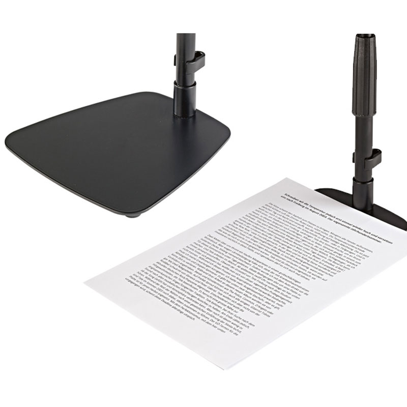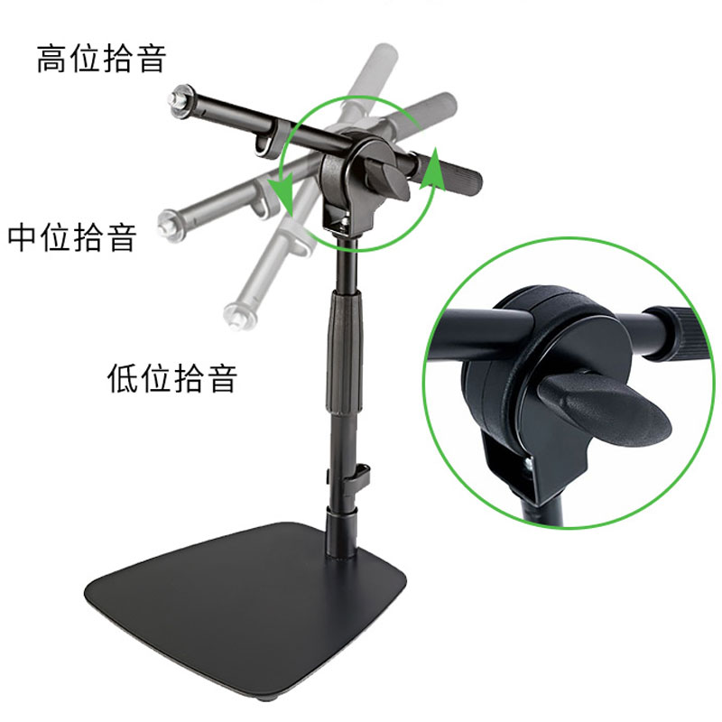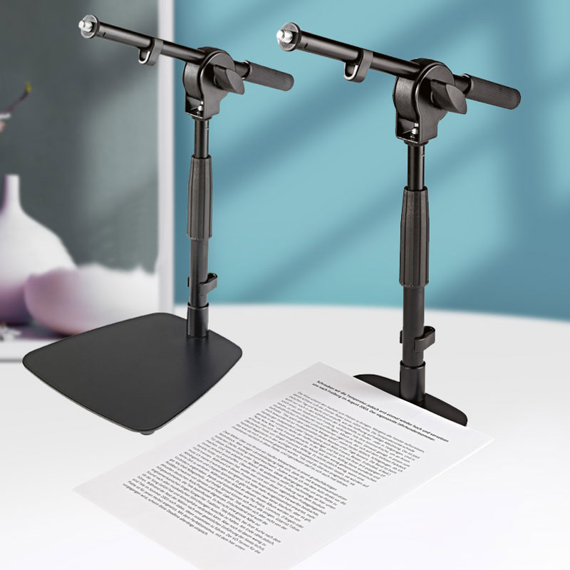 底座尺寸: 200 x 200mm 毫米,动臂长度: 310mm 毫米,高度: 从 285 到 400mm毫米,螺纹接头: 3/8",重量: 1.64kg 公斤。这款实用且用途广泛的钢制麦克风桌架可确认稳定性和功能性。得益于用户友好的高度调节和舒适的旋转臂,可以速度适宜调节麦克风。无论将支架用作广播和会议支持的桌面支架,还是用作放大器的落地支架,平坦的支架底座都能提供舒适且节省空间的使用。四个弹性橡胶脚确认噪音过滤。