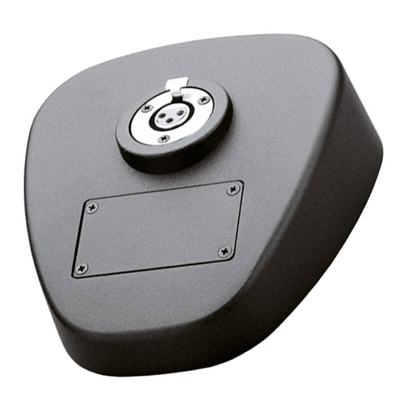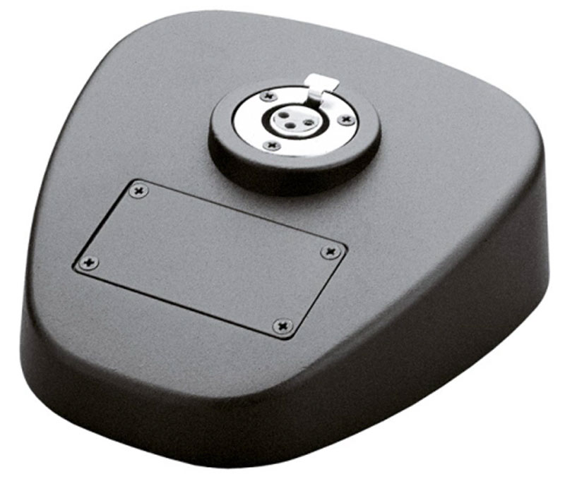 黑色铸铁底座,上面水平安装有 XLR 型母插座。可拆卸板,适合安装开关、指示器、控制器或连接器,并留有空间安装其他电路。底座配有后置 3 极 XLR 公连接器。