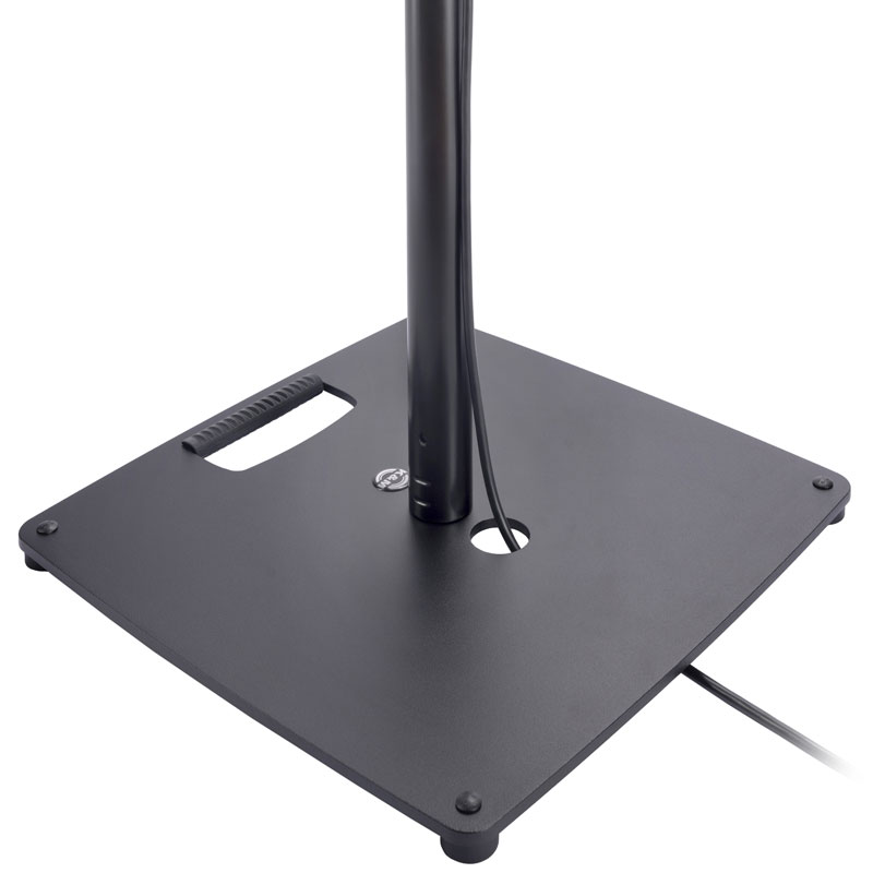 美观的扬声器支架,配有平钢板、手提把手和电缆管理装置。支架适合在空间有限的地方使用。高度用安然钩固定,并用低噪音、无间隙的夹紧螺钉固定。夹具的纤薄设计可节省运输空间并确认外观时尚。可用高度在 1,135mm 至 1,835mm 毫米之间,可以 5 个 140mm 毫米的步长达到。全部伸展时的大的负载能力为 15kg 公斤。
