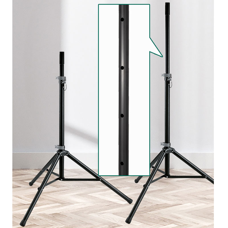 两个易于携带的扬声器支架由品质优良铝制成,装在便携箱中。玻璃纤维增强配件和附加安然销确认扬声器的稳定支撑。高度和支脚可通过易于使用的夹紧杆进行调节。