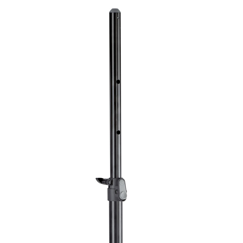 扬声器支架中的 XL 版本。牢固稳定,全部由铝管制成。直径为 35mm 毫米的实心基管和大橡胶端盖确认支架稳定牢固。与“普通”扬声器支架相比,根圆要大得多,达到惊人的 1,558mm 毫米。大的高度可达 2,500mm 毫米,因此提供了多种应用可能性。按钮系统的夹具可轻松调节支架高度。夹紧螺钉为扬声器提供额外的稳定性和无振动支撑。其他特别功能包括延长管的拉出式防护装置、集成减震器和扬声器箱体的安装辅助装置。支架可折叠,便于运输。借助合适的配件,该支架可以变成灯光架。