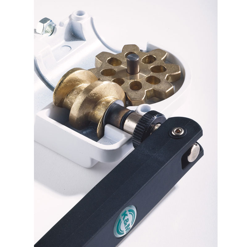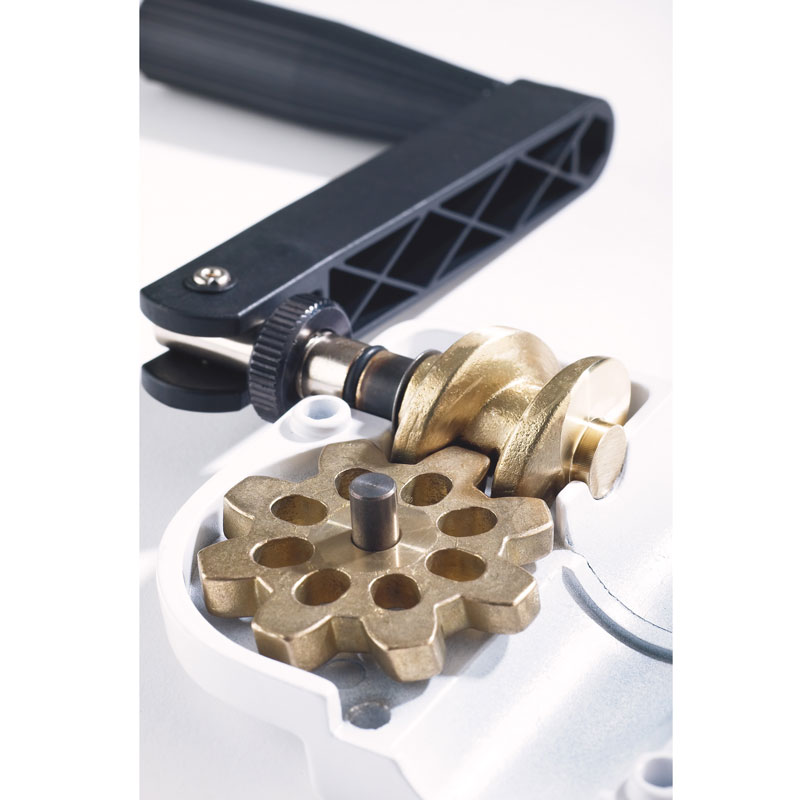 特别功能:按钮系统和手摇曲柄可避免不受控制的反向运动;锁定螺钉可提供额外的安然性;锌压铸连接件