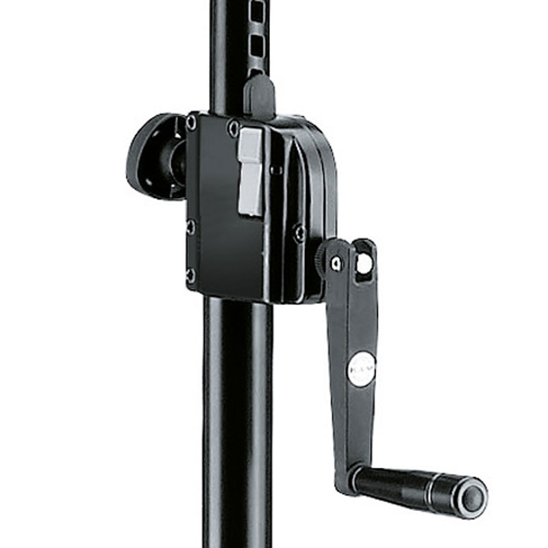 重量:8.57kg,高度:1385-2180mm,品质优良钢制扬声器支架,带有专注用途的压铸锌夹。使用曲柄和按钮可以轻松安然地进行无级高度调节,从而防止不受控制的返回行程。额外的锁定螺钉可确认牢固固定。加长管 ? 35 mm,由于采用了压入式 M10 螺纹衬套,适用于箱体和轻型桁架。