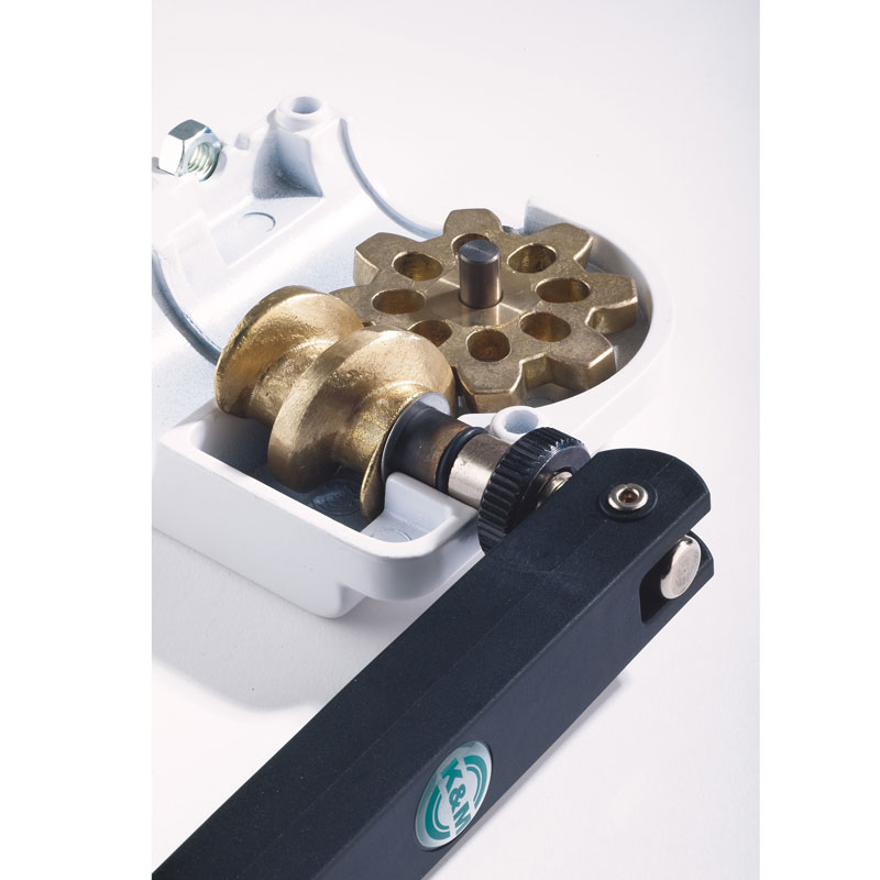 特别功能:按钮系统和手摇曲柄可避免不受控制的反向运动;锁定螺钉可提供额外的安然性;塑料连接部件