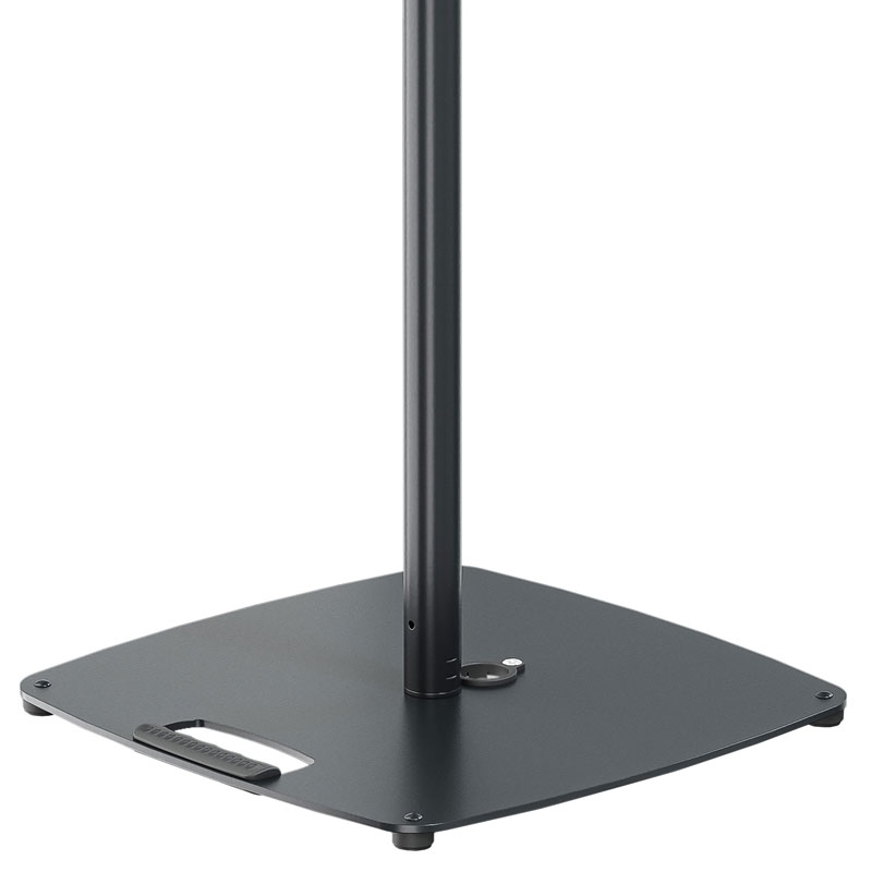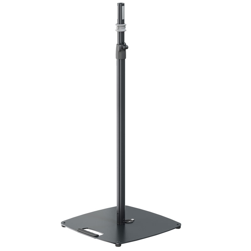 美观的扬声器支架,配有平钢板、实用的提手和电缆布线。该支架非常适合在空间有限的情况下使用。高度用安然钩固定,并用夹紧螺钉固定,以实现无振动和牢固安装。夹具的纤薄设计可节省运输空间并确认外观时尚。可用高度在 1,135mm 至 1,835mm 毫米之间,可分 5 个 140mm 毫米的步长进行调整。膨胀心轴配有速度适宜释放紧固件,可确认扬声器箱体紧密贴合。塑料膨胀夹板还可确认扬声器和管子之间无振动连接。全部伸展时的大的负载能力为 30 公斤。