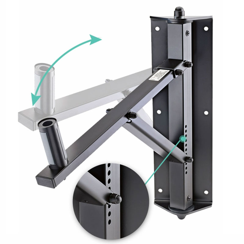 使用这款可旋转和倾斜的壁挂支架可将扬声器固定在您想要的角度。支架有 11 种不同的倾斜设置,范围为 22°。旋转装置可调节到任何角度。膨胀心轴适用于机柜内部直径为 35mm 至 37mm 毫米的扬声器,使用扳手拧紧,以实现无摆动和低共振的扬声器安装。