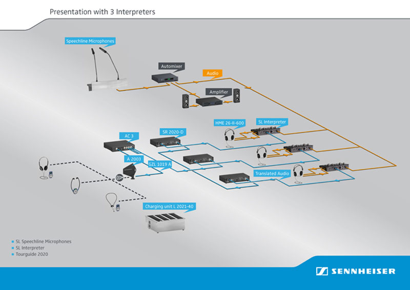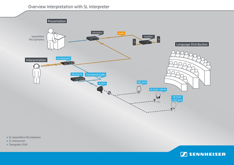 对于只需要一种源语言和一种接力语言的演讲风格会议,SL Interpreter非常适用。推荐配合Sennheiser Tourguide 2020或1039使用。