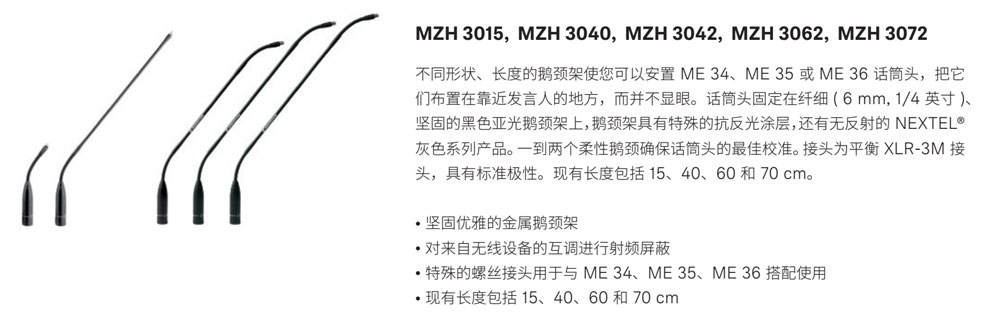 不同形状、长度的鹅颈架使您可以安置 ME 34、 ME 35 或 ME 36 话筒头,把它