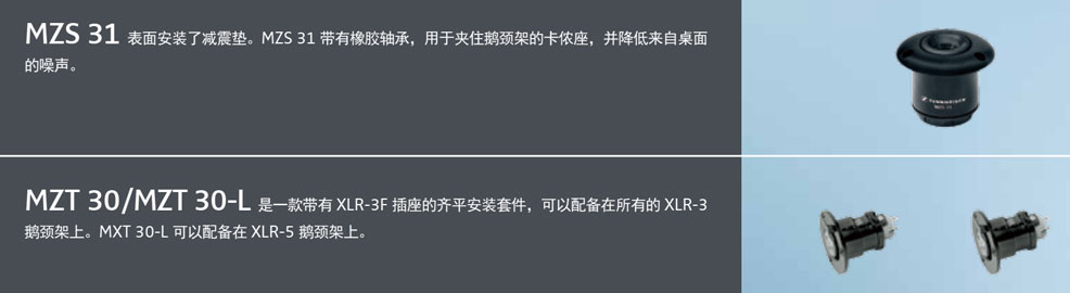 MZT 30桌面插座采用XLR-3接口,能够与森海塞尔的 MZH鹅颈杆连接使用。
