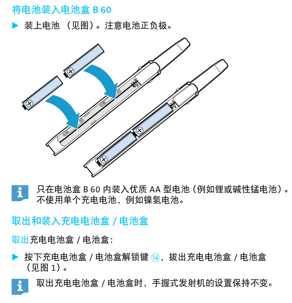 Skm 6000和 skm 9000发射机的主要特点是装有2节 aa 电池,sennheiser b60是数字6000和数字9000系列手持无线发射机的电池盒。 它装有两节 aa 电池,与 skm 6000和 skm 9000发射机兼容。