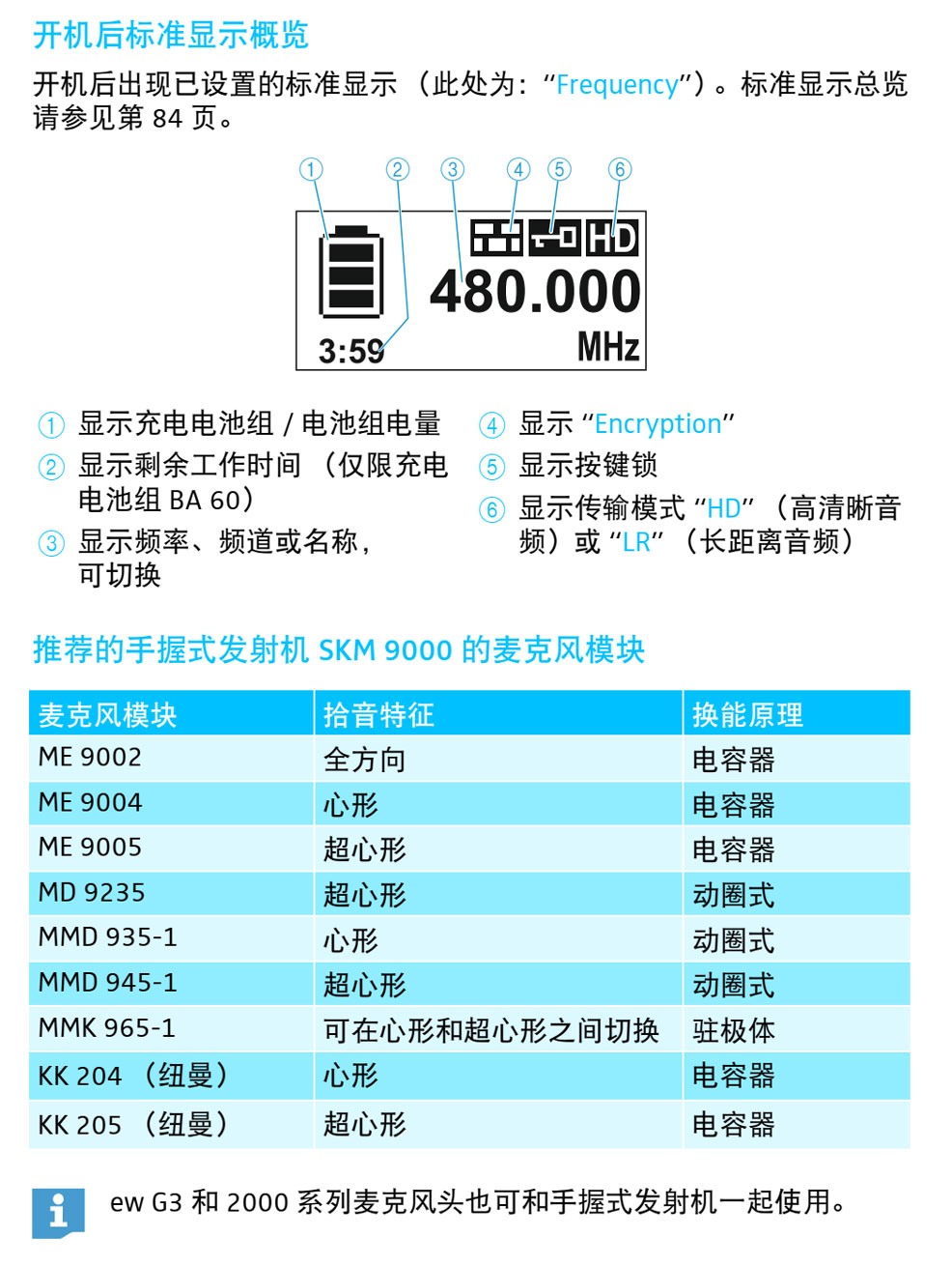 SKM 9000与革命(evolution)无线系统G3和2000系列的传声器极头完全兼容,其中包括纽曼KK204和KK205传声器极头。