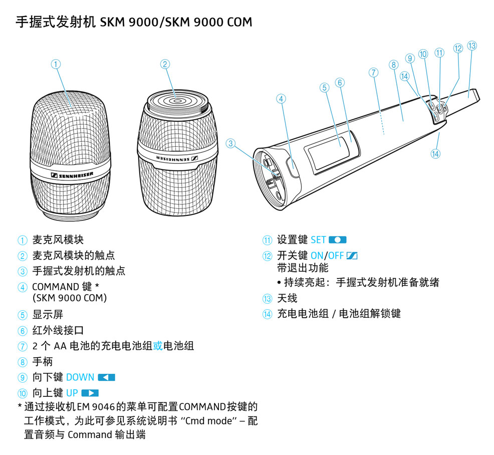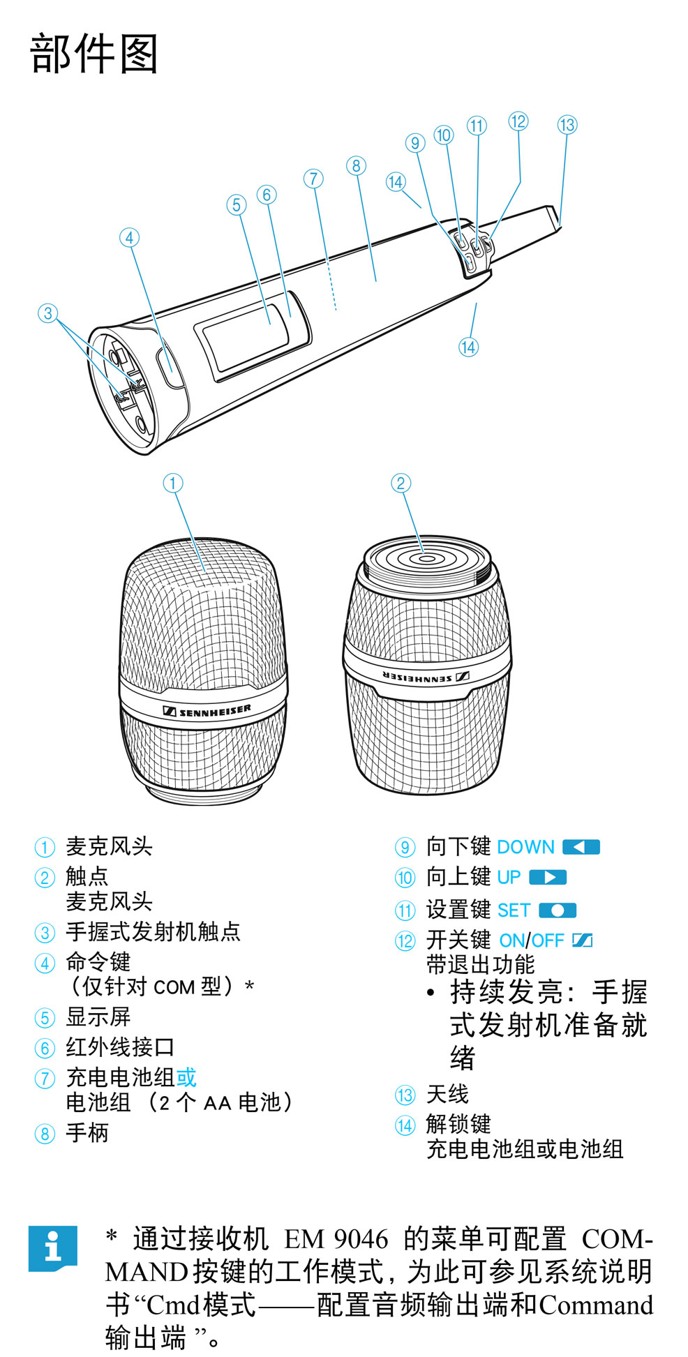 1 手握式发射机 SKM 9000 或 SKM 9000 COM