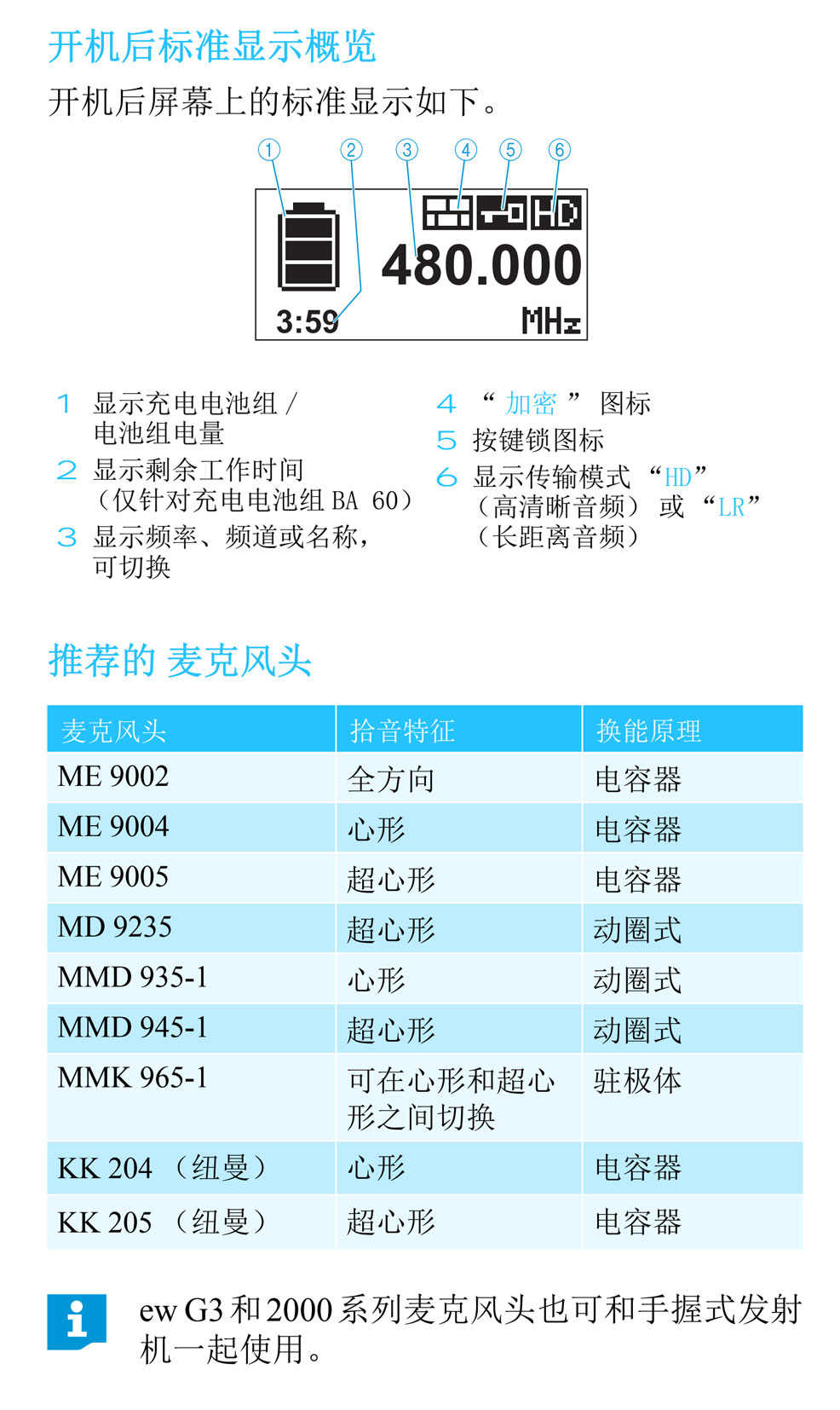 世界一流的数字手持式发射器。惊人的动态范围。兼容G3和2000系列话筒头,两个Neumann话筒头(KK 204和KK 205),和若干Digital 9000专享的话筒头。