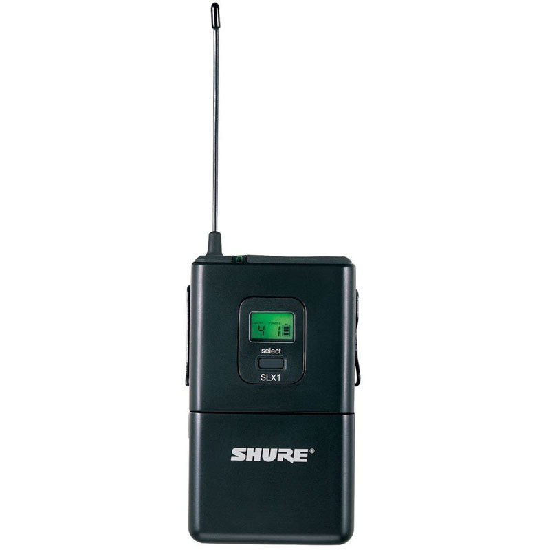 SLX1无线腰包式发射机包含一个时控背光式LCD显示屏、频率和功率锁定以及“静音”功能。