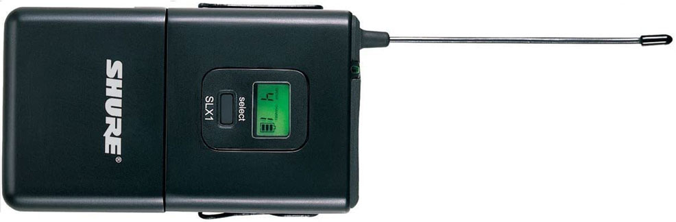SLX1无线腰包式发射机包含一个时控背光式LCD显示屏、频率和功率锁定以及“静音”功能。