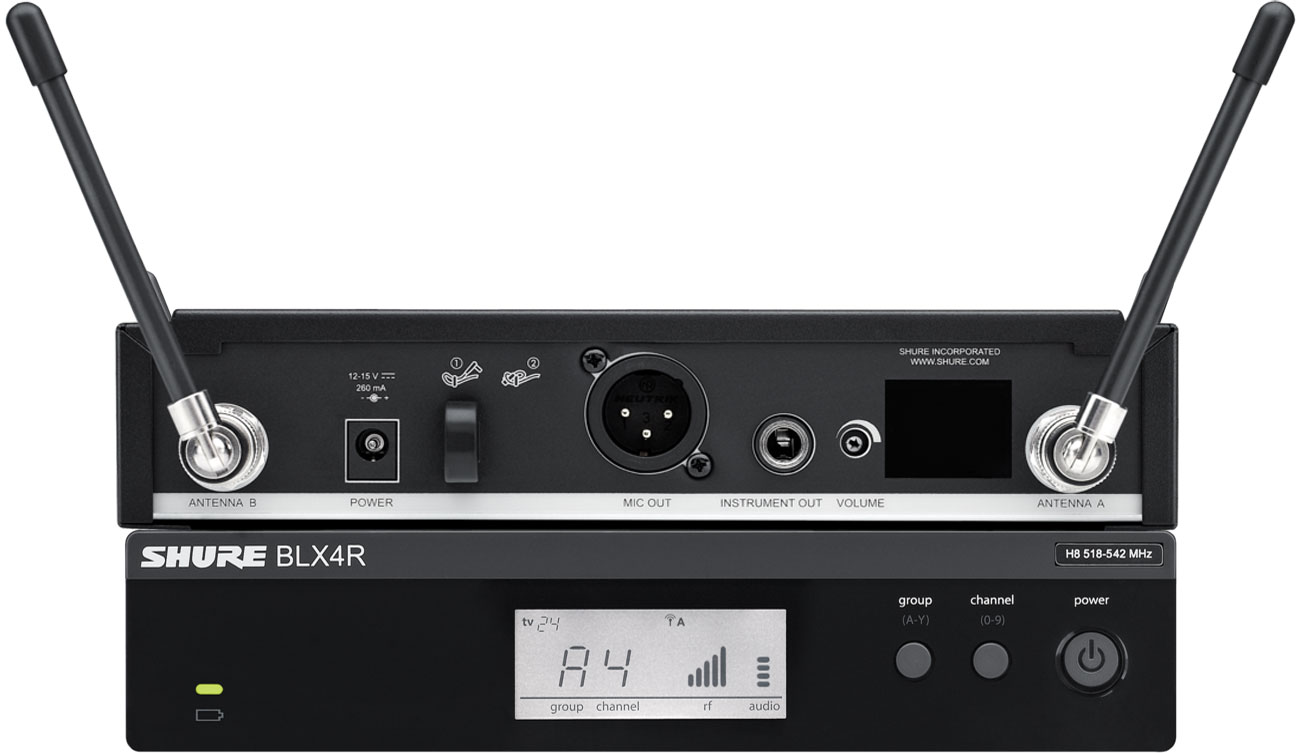 BLX4R半机架接收机采用耐用的金属结构,安装简单,易于控制。一键式QuickScan频率选择可快速查找最佳频率,可拆卸式天线让您能够迅速分布天线。包括机架支架。