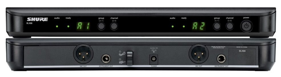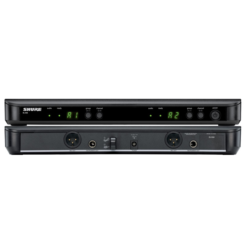 包含:BLX88双通道无线接收机;2个BLX2手持式发射机,配备精密制作的Beta 58A超心形动圈人声话筒;2个话筒夹;PS23电源、WA621彩色ID保护盖和URT2机架托盘(可选配件)。