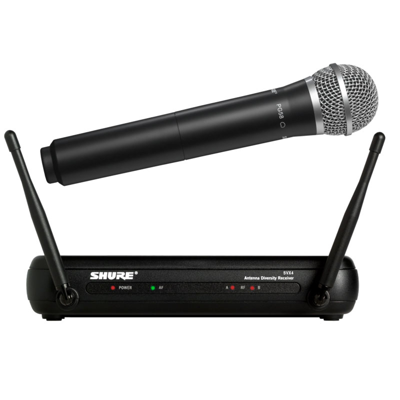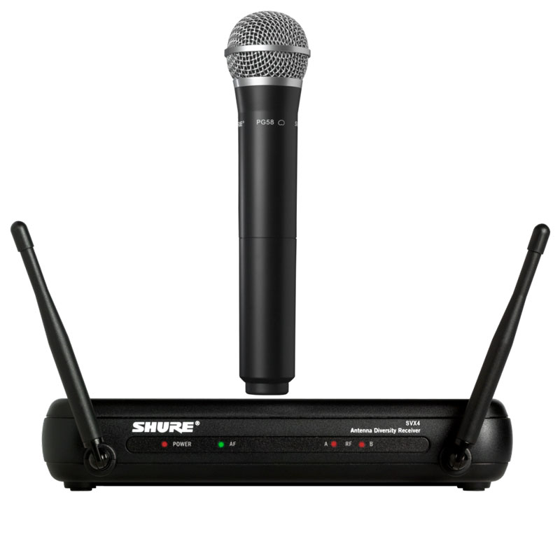 PG58话筒头带SVX2无线手持发射机的无线话筒,专为突出领唱和伴唱人声的清晰度进行了优化,坚固耐用。