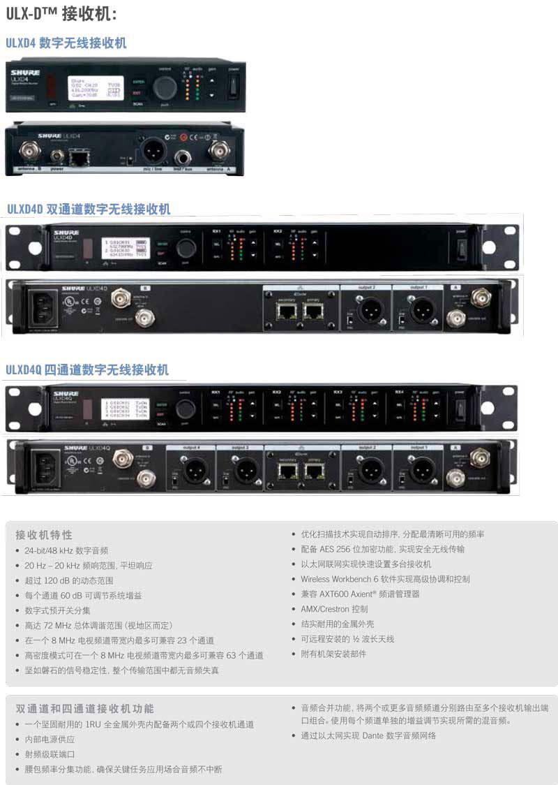 Shure ULXD4Q 舒尔四通道数字无线话筒 无线麦克风一拖四