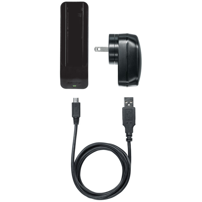 含电源适配器的单一电池充电器。可为舒尔SB900A可充电锂电池充电。此充电器可以从交流电源或USB端口充电。用于MXW1、MXW2、MXW6、MXW8。