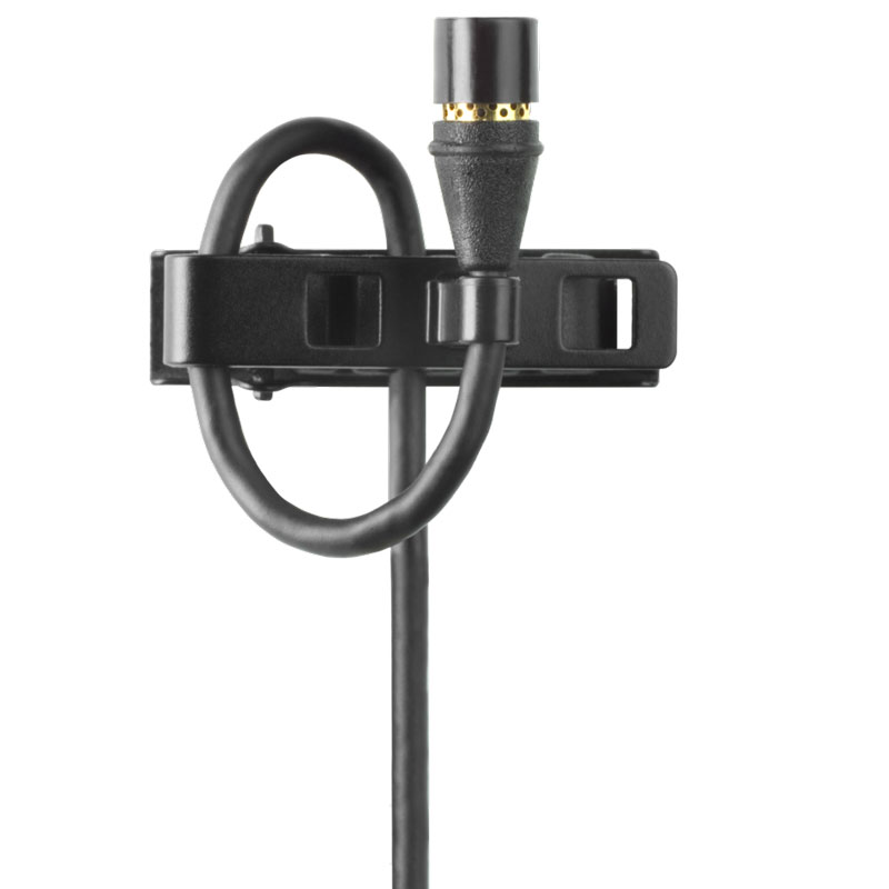 全向形微型领夹电容话筒,频响20Hz-20kHz,灵敏度46.5dB,最大声压级143dB,信噪比60dB,动态范围109dB;TQG插口,需连接舒尔无线腰包式发射机,配合无线系统使用;重量:21g。