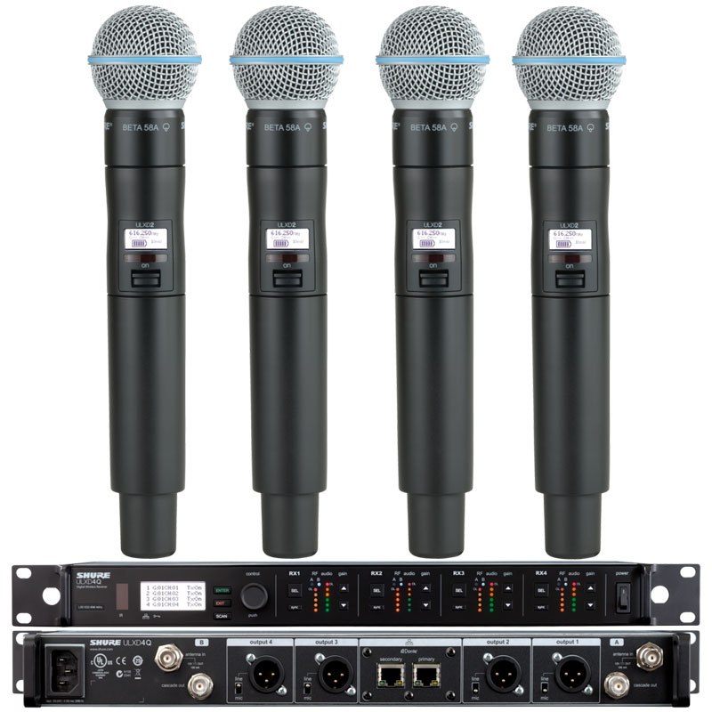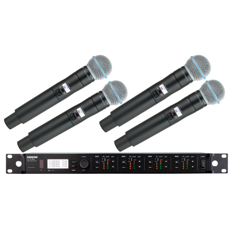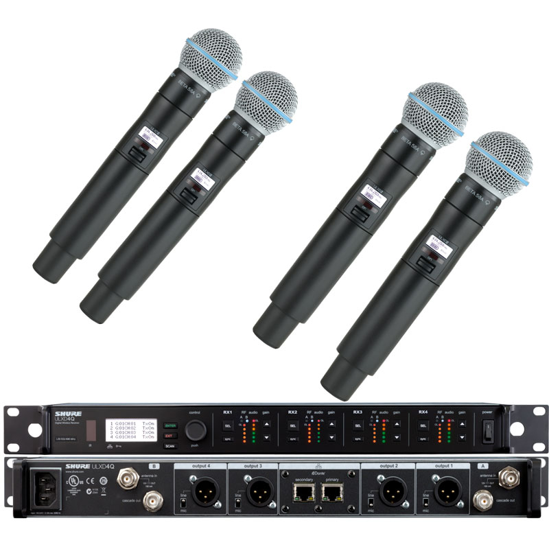 ULXD4Q+ULXD2/BETA58A 超心形电容一拖四无线手持话筒 四通道数字无线话筒